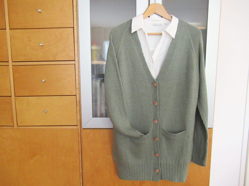 That was 26 sts to 10 cm/4”. Still too small. Going up to even larger needles would give a far too loose and open fabric. What to do now? I think I’ll go for a needle size in between the first and the second swatch to get the fabric I like. I’ll do some maths, and will then follow the instructions for a larger size that will (hopefully) result in a cardigan my size.
