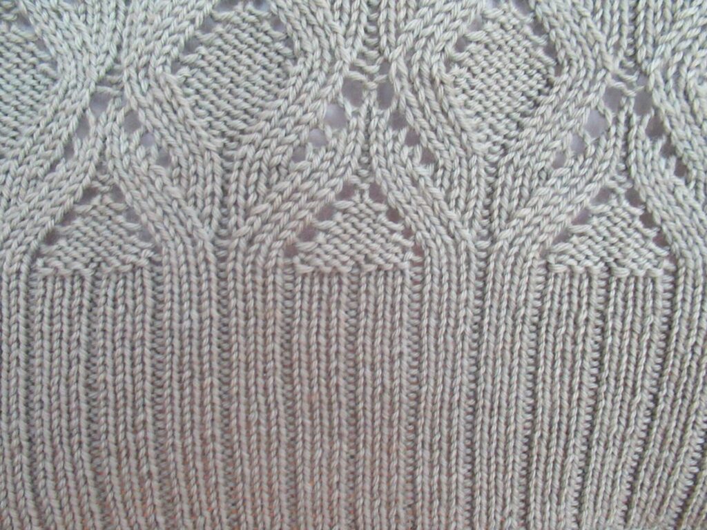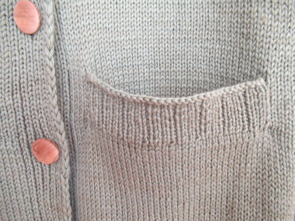 The cardigan is knit in the round, with only knit rounds (no purling). I’d have to mimic that in order to get a good impression of the gauge. A flat swatch knit back-and-forth wouldn’t work, because the way I knit, purl rows are always slightly larger than knit rows. In other words, I’d have to have all knit rows. As my gauge is always tighter knitting a small circumference (e.g. a sleeve) than a large one (a yoke or body), a small swatch knit in the round would not work either.