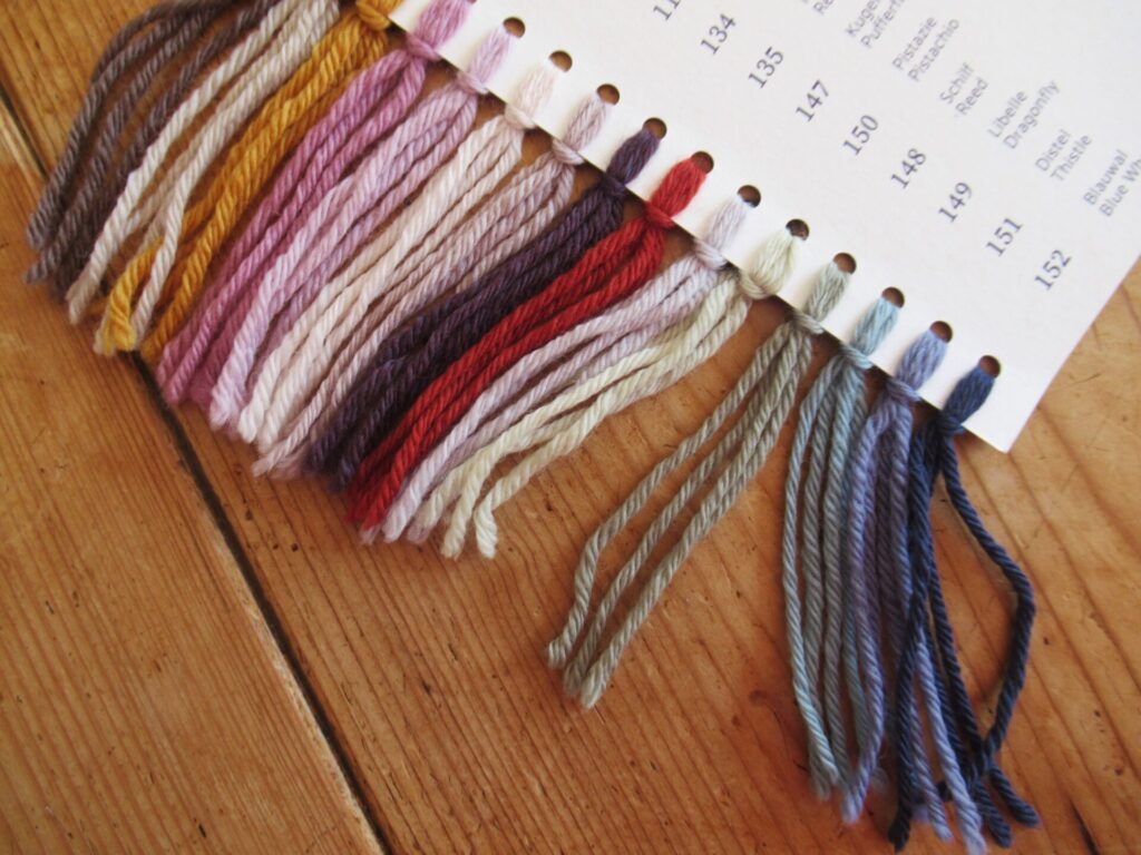 This turned out to be so time-consuming, however, that I quickly gave it up. (I also have software for things like this, but somehow that didn’t quite work for me either.) By now, though, I had already discovered that simply substituting the same of my colours for the same of the designer’s colours everywhere wouldn’t always work. Because the designer used colours from 4 colour groups, and I chose colours from just 3 colour groups (see this post), there would not always be enough contrast in my version.